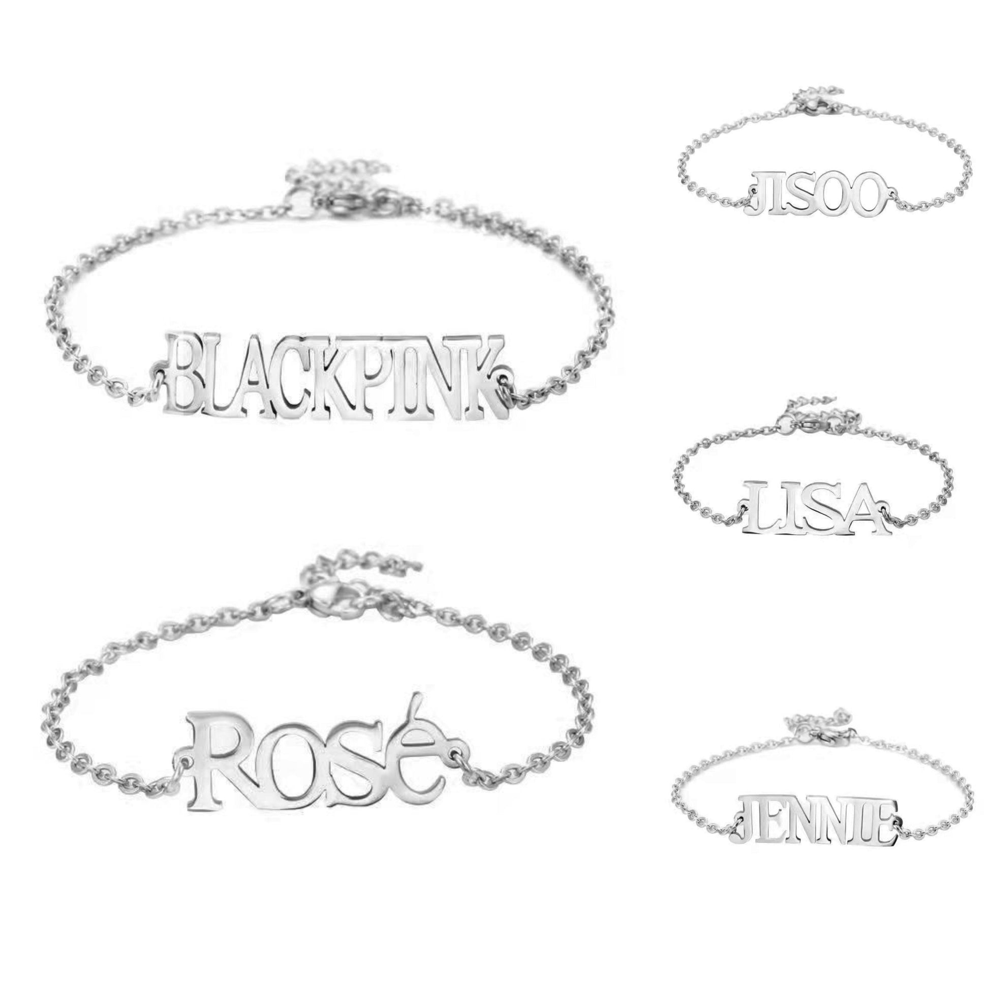 Blackpink bracelets in stainless steel, hypoallergenic: to wear or give as a gift to another blink!🩷 Available with the name of all members and also with the name of the group.