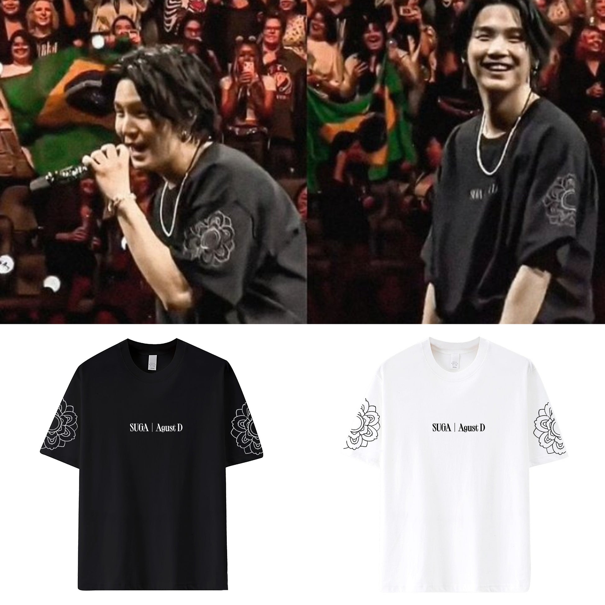 T-shirt from our SUGA D'DAY AGUST D collection made from 100% cotton fabric, available in sizes S to 3XL, unisex: replica merch of excellent quality and finish! Perfect to include in your wardrobe and also a great option to give as a gift to another Army!😍💜
